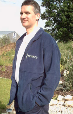 Fleecejacke, marine, mit gesticktem Brust- und Rückenschriftzug "Notarzt" in Reflexgarn silber, weiß oder neongelb