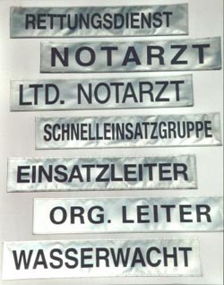 Rückenschilder, 3M-Scotchlite silber, Größe 42 x 8 cm