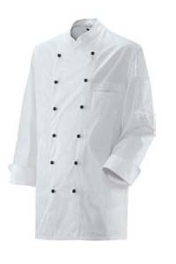 Koch/Bäckerjacke, weiß, 100% Baumwolle, 210g/m², langarm, sechser Knopflochleiste, zweireihig, Ärmel mit doppeltem Umschlag, Brusttasche, Ärmeltasche